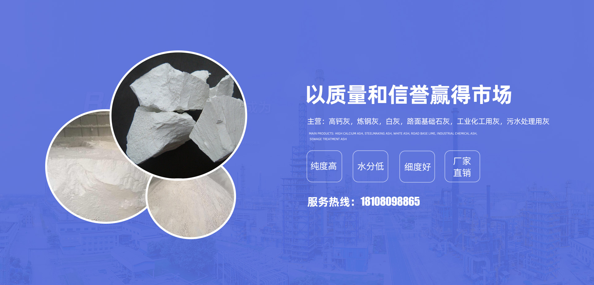 中進(jìn)鈣業(yè)秉承“以質(zhì)量和信譽(yù)贏得市場(chǎng),公司理念是:為各個(gè)需要高鈣灰,煉鋼灰,白灰,路面基礎(chǔ)石灰,工業(yè)化工用灰,污水處理用灰的客戶提供優(yōu)質(zhì)服務(wù),價(jià)格合理,性價(jià)比高。